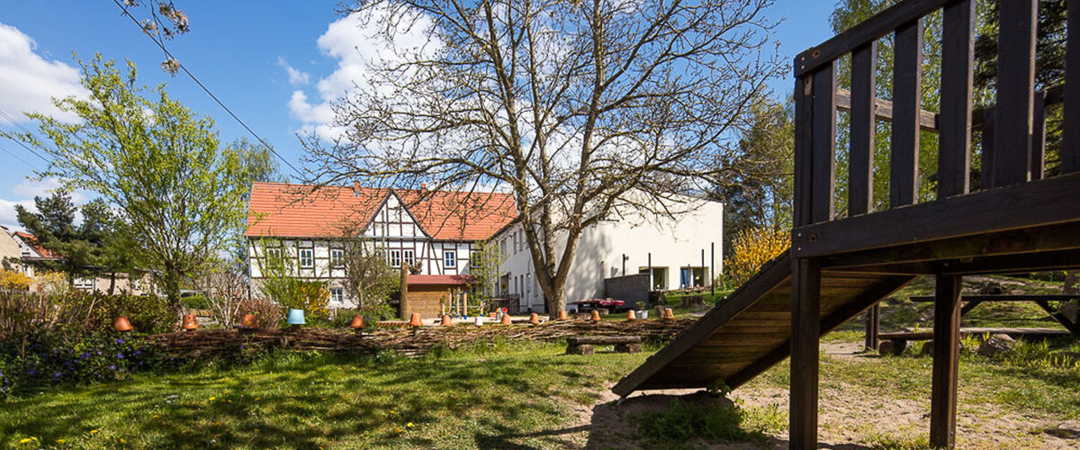 Unsere Kindertageseinrichtung wurde am 01.08.1997 unter dem Dach des Vereins „Miteinander*Leben*Lernen Sachsen-Anhalt e.V.“ eröffnet. Sie befindet sich in Schwemsal, einem Ortsteil der Gemeinde Muldestausee, mitten im Naturpark Dübener Heide.