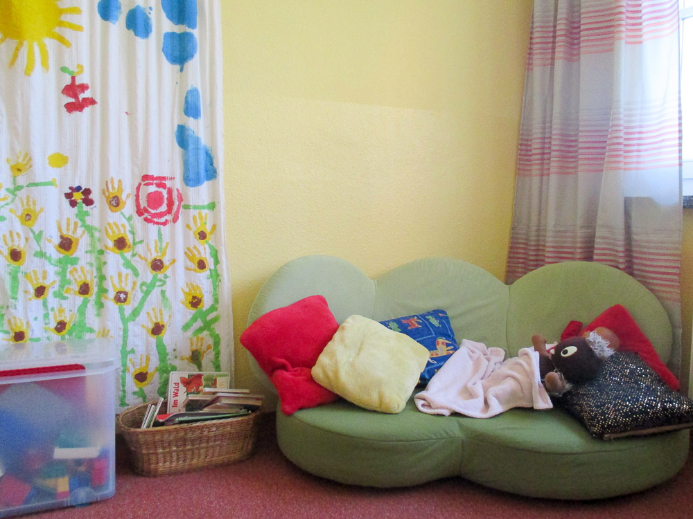 Kinder genießen es im Alltag zu träumen, ihre Blicke schweifen zu lassen und sich Orte zu suchen, an denen sie Ruhe erfahren können. Die Phase des scheinbaren Nichts-Tuns ist eine Zeit in der Kinder Eindrücke und Erlebtes verarbeiten. Sie ist für die gesunde Entwicklung der Kinder wichtig. Wir bieten den Kindern Raum und Zeit selbstbestimmt Orte der Ruhe zu suchen. Nach dem Mittagessen gibt es für alle Kinder eine Pause zum Ausruhen und Träumen. Die pädagogischen Fachkräfte unterstützen die Kinder in dieser Zeit dabei, in Entspannung zu finden.