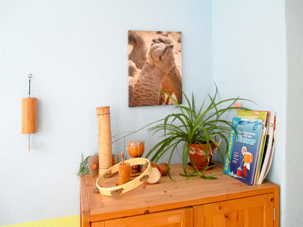 Das gemeinsame Singen, Musizieren und Tanzen steht bei uns nicht nur einmal wöchentlich auf dem Programm. Wir wollen die Kinder für Musik begeistern, deshalb durchdringt die musische Betätigung unseren gesamten Alltag. Die Begeisterungen, die vom Musizieren, Singen und Tanzen ausgehen, sind unabhängig vom Lebensalter, vom Entwicklungsstand und von Behinderungen. In der heutigen Zeit werden die Kinder häufig zu lange, zu laut und nicht entwicklungsentsprechend akustisch und häufig zusätzlich noch visuell berieselt. Wir begegnen den Kindern mit kindgerechten Inhalten. Musik ist hör- und fühlbare Mathematik. Musik bewegt Menschen – Musik prägt Menschen.