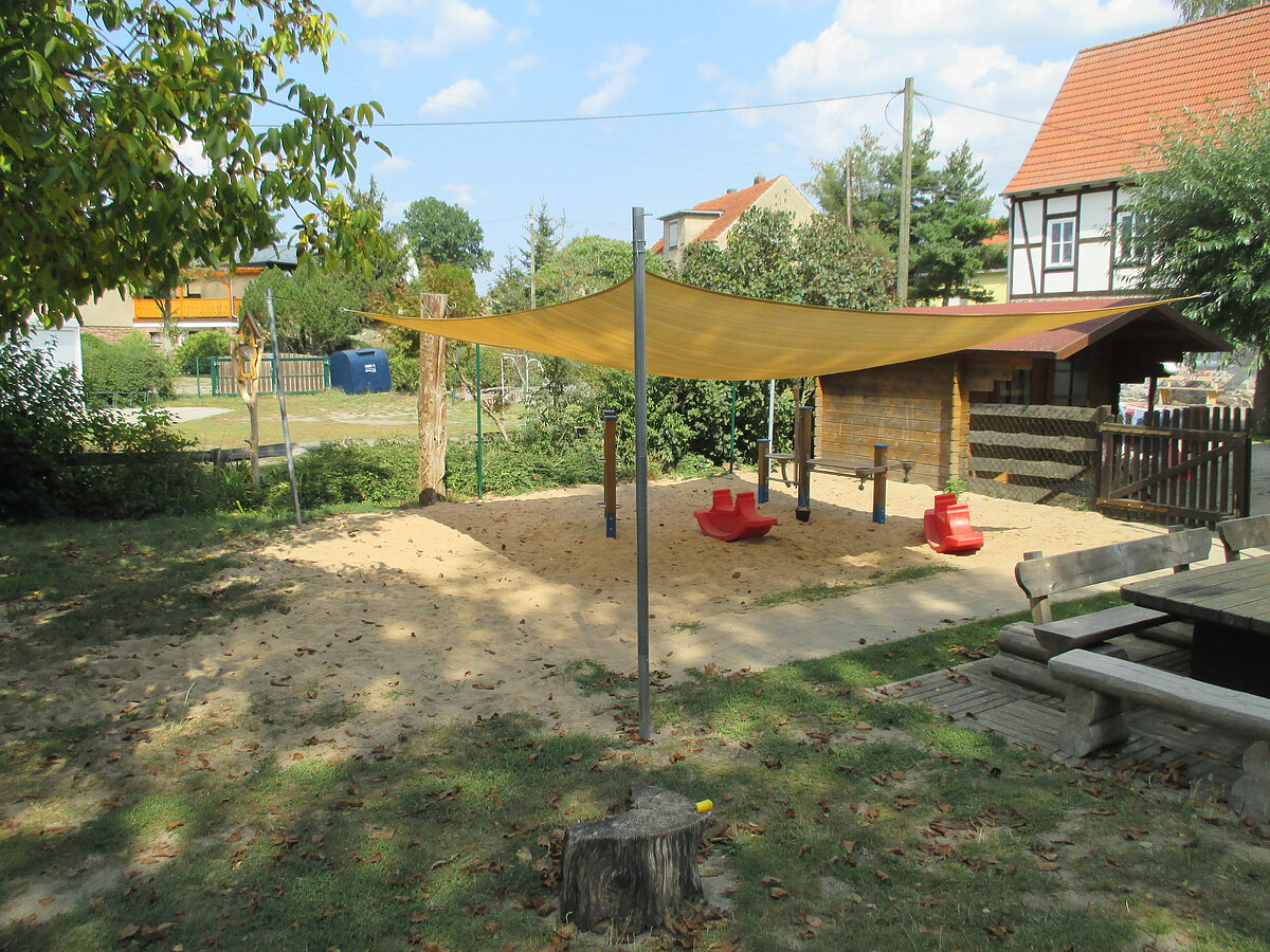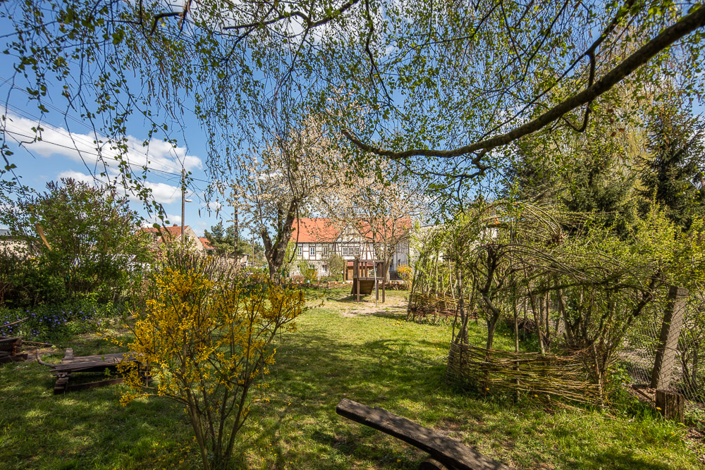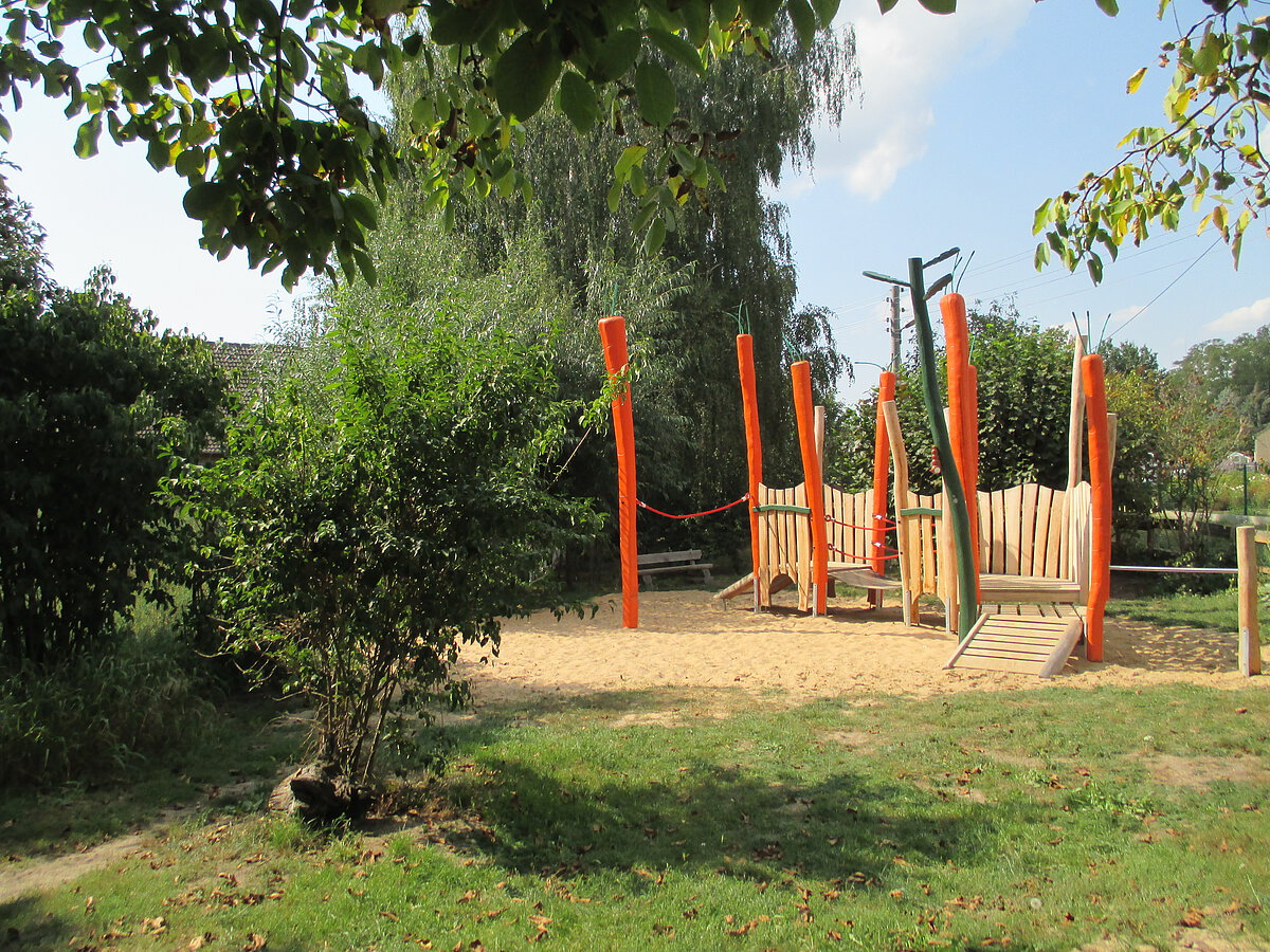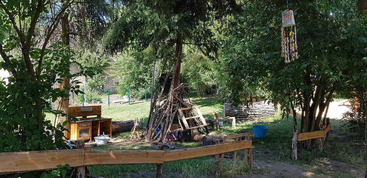 Das Außengelände ist so gestaltet, dass es die Kinder zum Lernen, Entdecken und Forschen einlädt. Unser Naturspielplatz ist nicht nur eine grüne Oase für die Tiere, sondern auch für alle Kinder. Gebüsche, Bauwerke aus Weiden und andere Gewächse laden zum Spielen, Verkriechen und Sammeln von Naturerfahrungen ein.